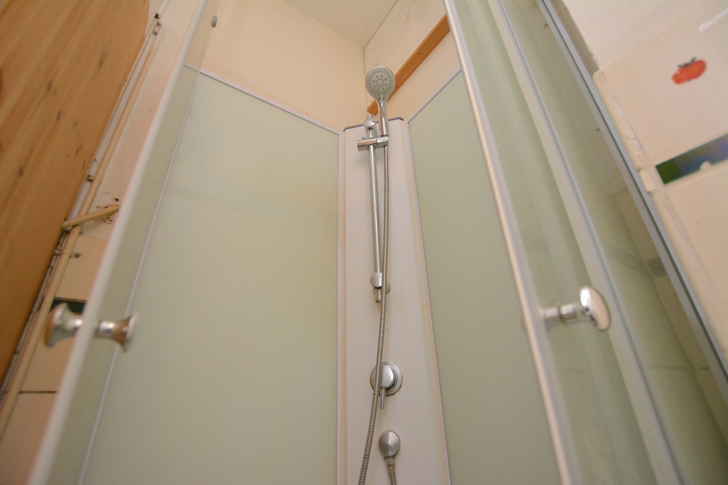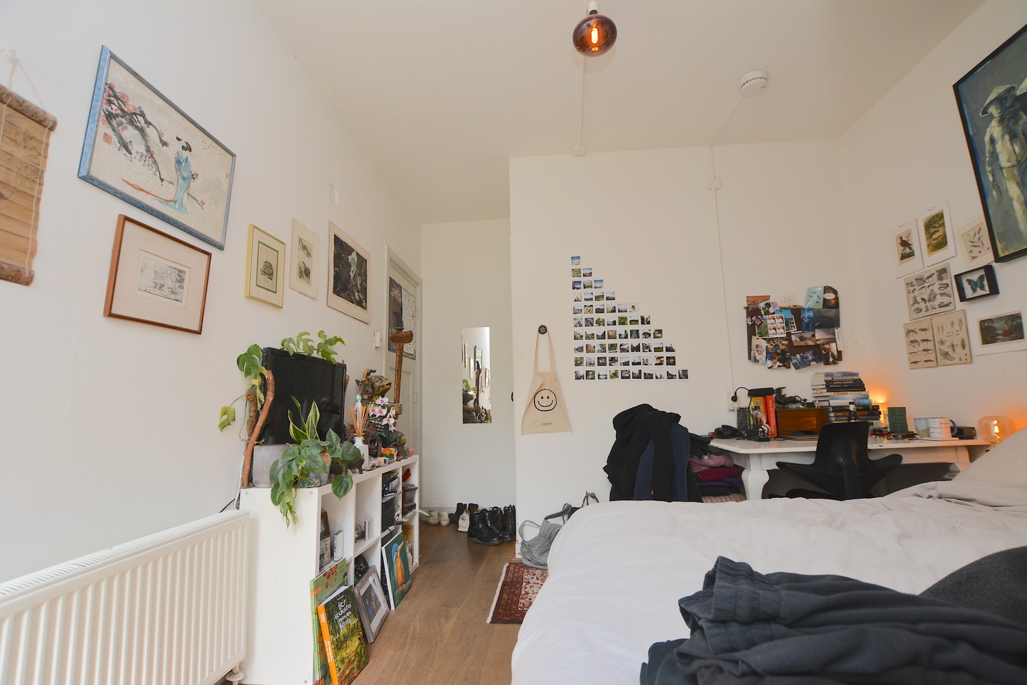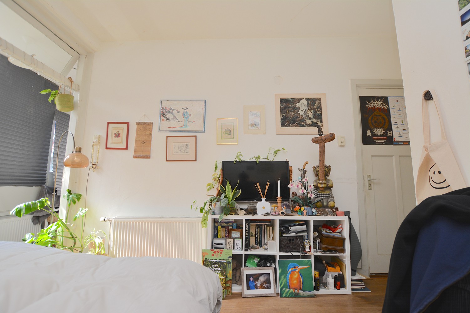 Through the common hall you enter the spacious room which is located at the rear of the house. The room consists of two parts. In the first part there is room for a double bed, dining/study table and a closet. The other part there is a practical kitchen with shower cabin. Through the kitchen there is access to a shared balcony, this you share with 1 roommate) . The toilet is located in the hallway and is shared with two flatmates as well as the washing machine located in the hallway.