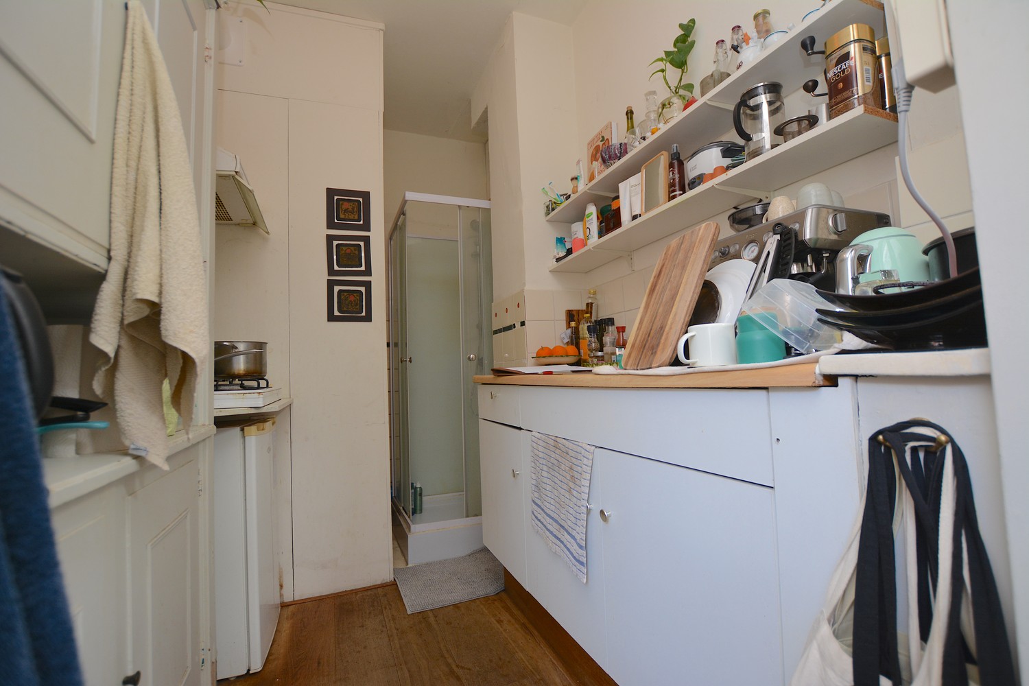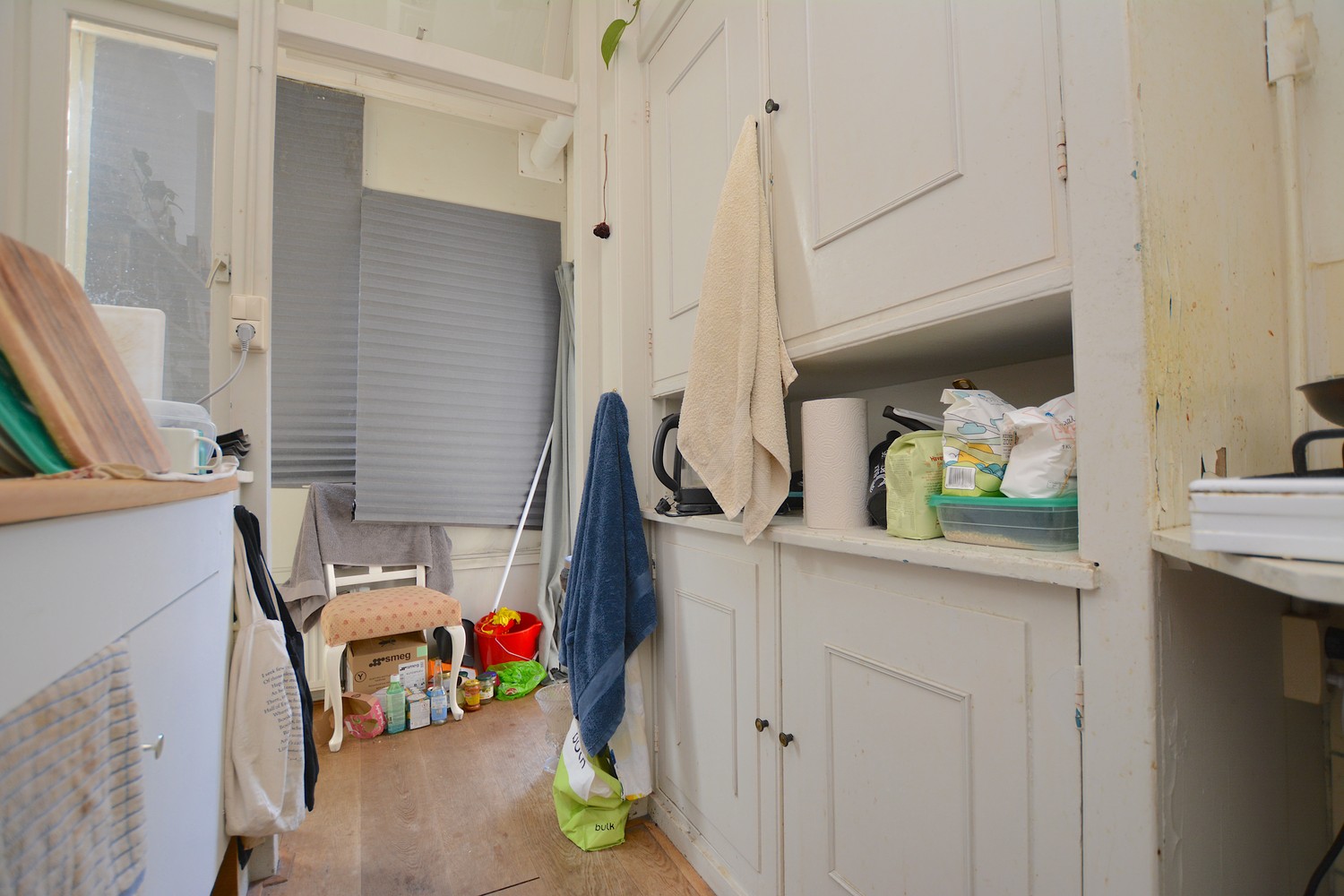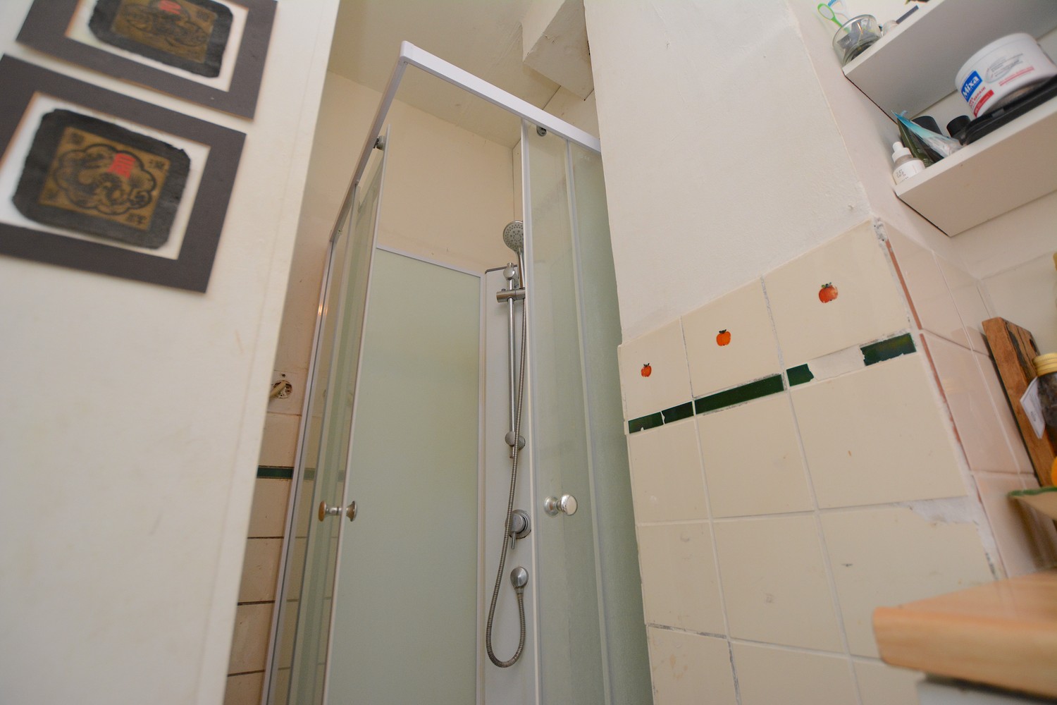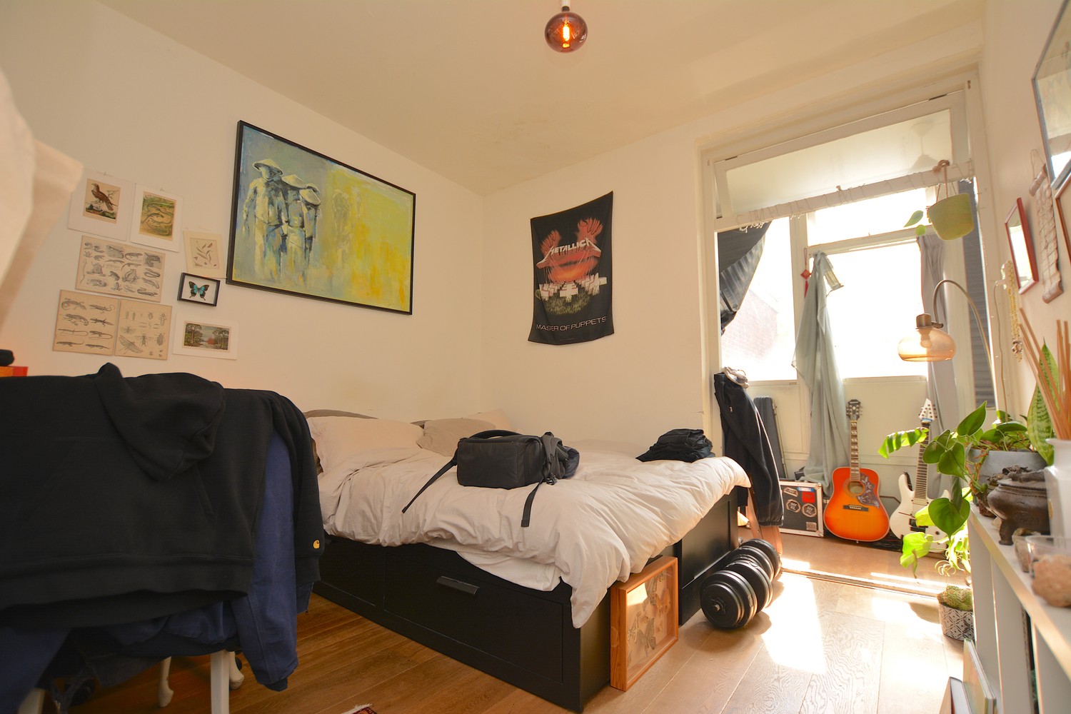 Through the common hall you enter the spacious room which is located at the rear of the house. The room consists of two parts. In the first part there is room for a double bed, dining/study table and a closet. The other part there is a practical kitchen with shower cabin. Through the kitchen there is access to a shared balcony, this you share with 1 roommate) . The toilet is located in the hallway and is shared with two flatmates as well as the washing machine located in the hallway.
