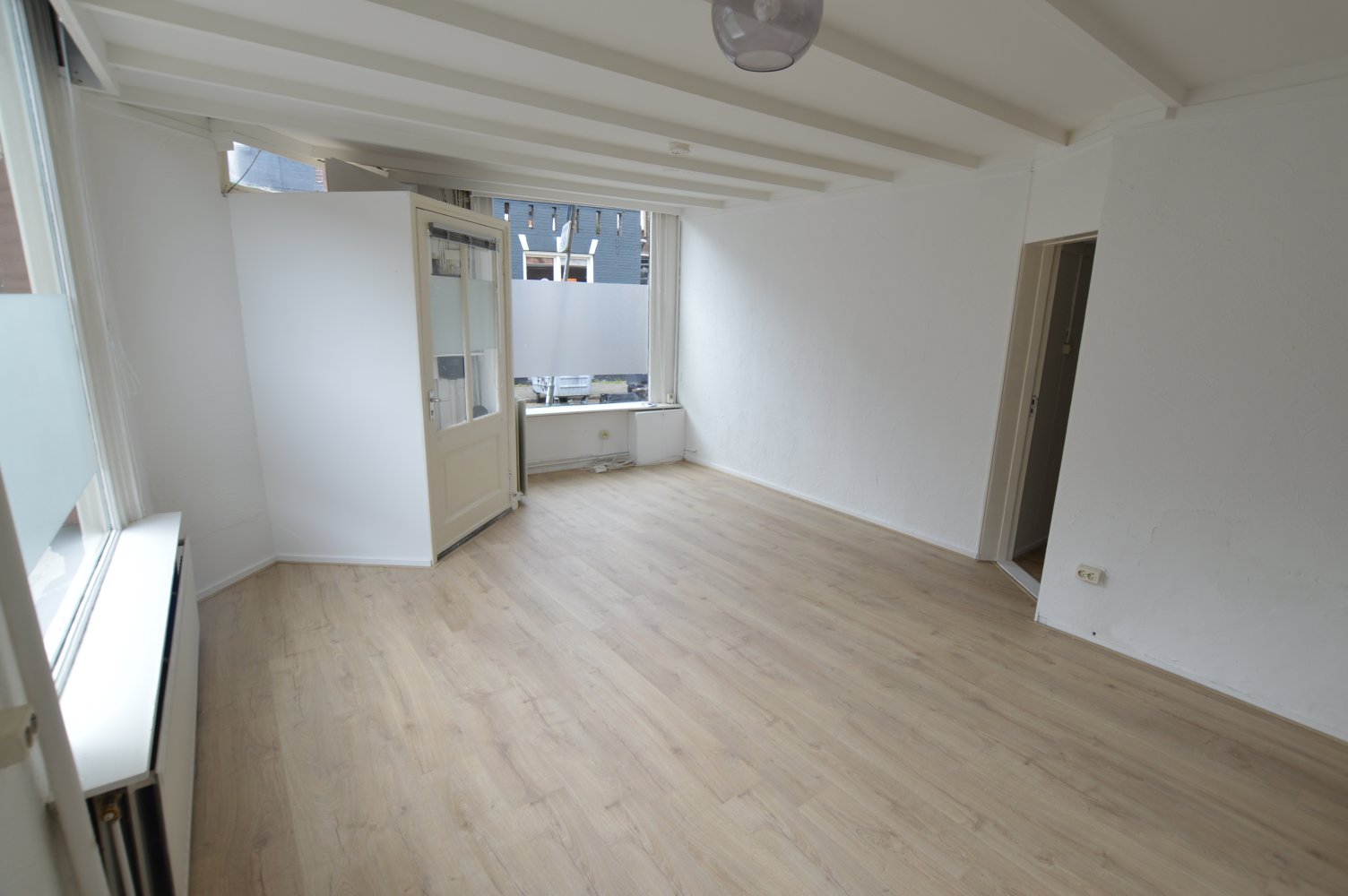This space is situated on the ground floor of the living area, the space has a spacious living room with its own kitchen. There is an extra storage room and a bedroom with a washbasin, with access to the bathroom with shower. The toilet is shared with 4 other tenants.