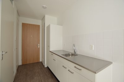 The property is located in the Kamperpoort neighborhood. Kamperpoort is a Zwolle working-class neighborhood that has been considerably renovated in recent years. The bustling city center, the summer city beach and Pathé cinema are within a few minutes walking or cycling distance. The central train station is about 5 minutes by bike. The studio in question has its own kitchen and separate bathroom with shower, toilet and sink. There is a common laundry room with a washer and dryer, which are shared with the co-tenants. The costs for using these are €3.80 per time. There is no connection for a washing machine in the studio. The studio is unfurnished with a modern PVC floor and window coverings. There is a bicycle shed in the basement and a parking space can be rented, if available.