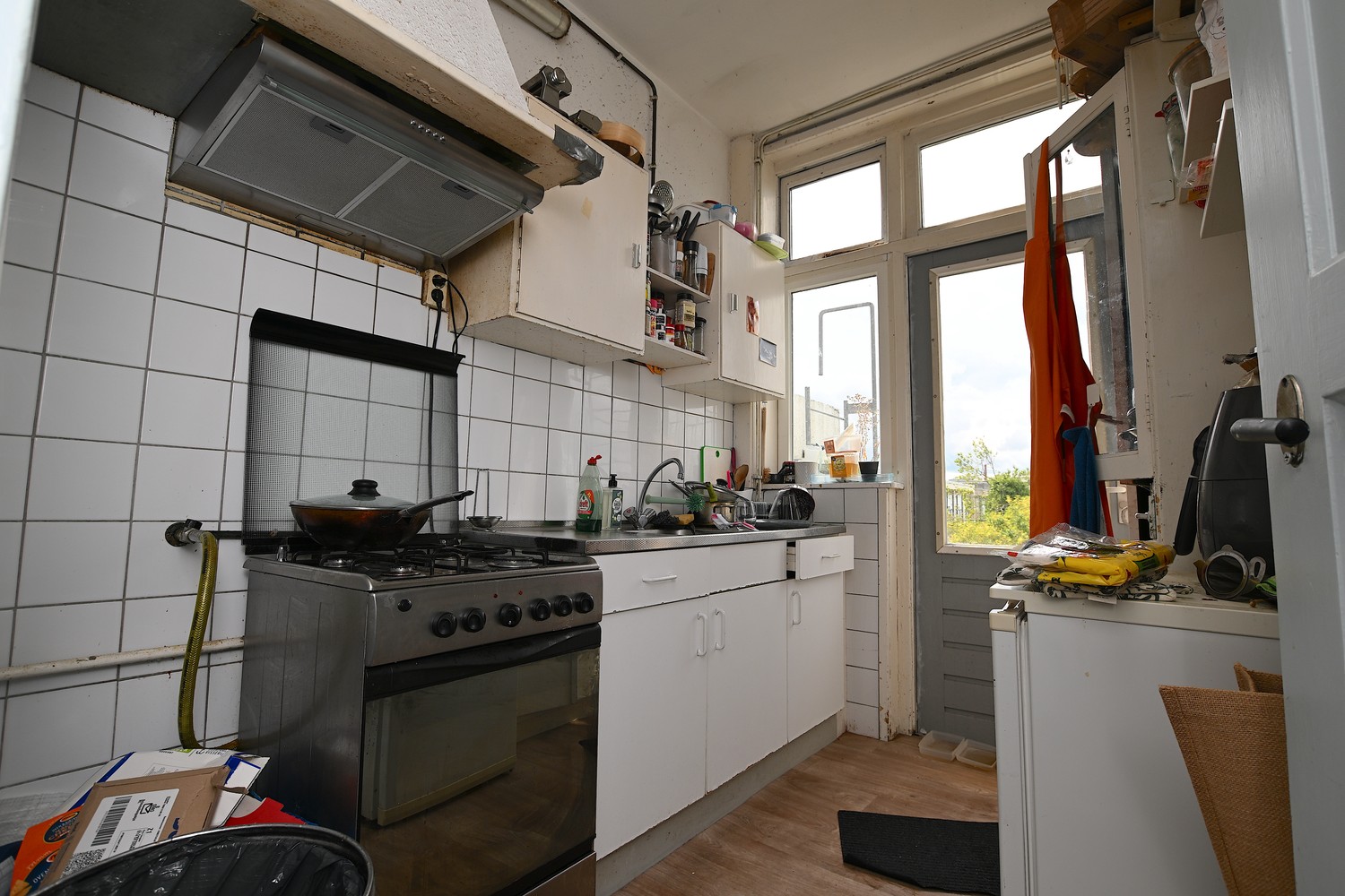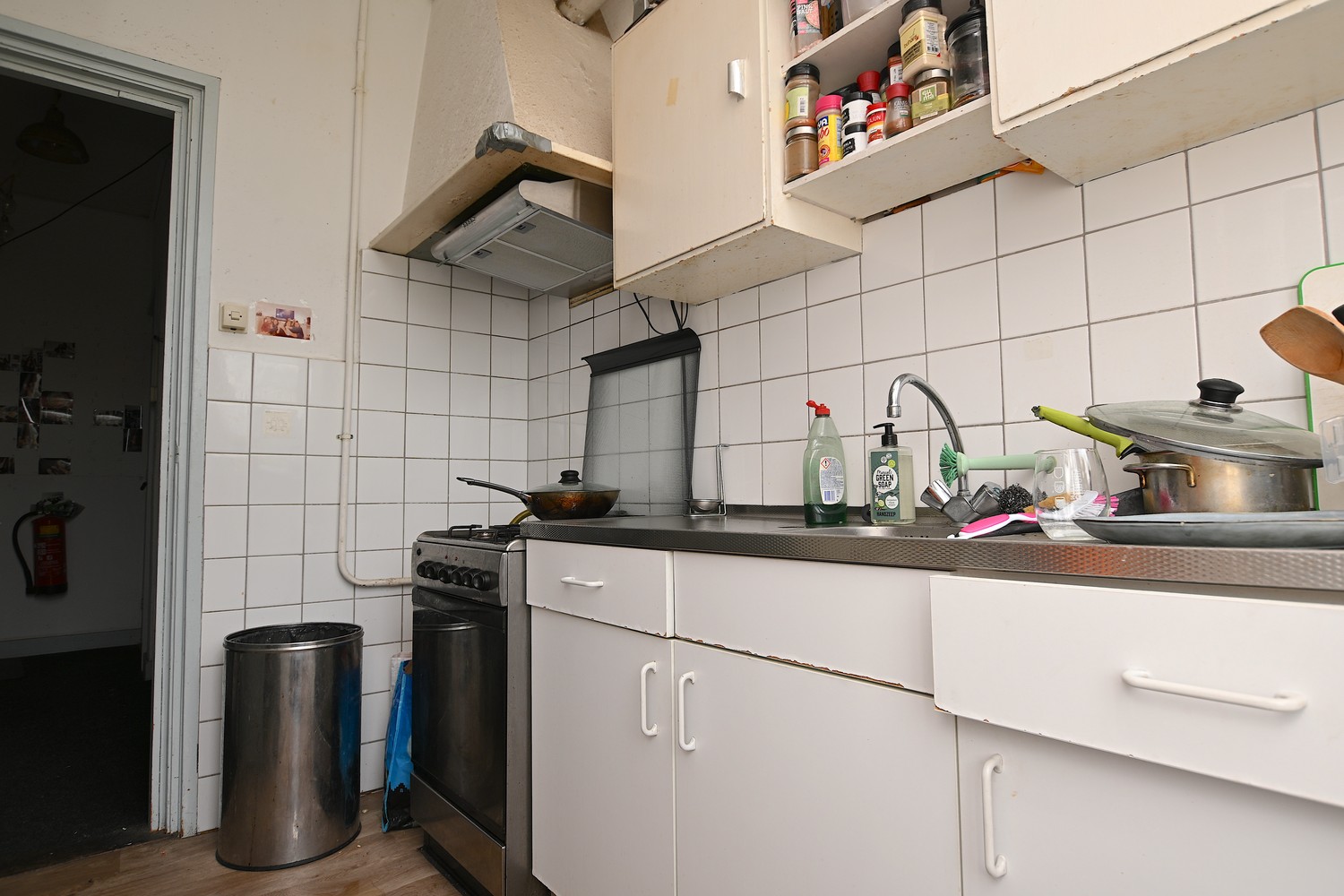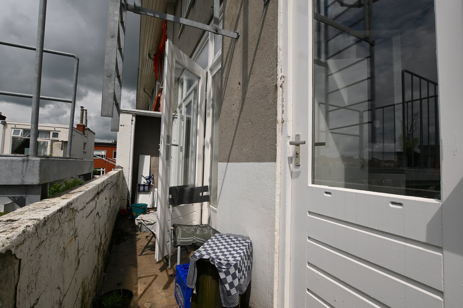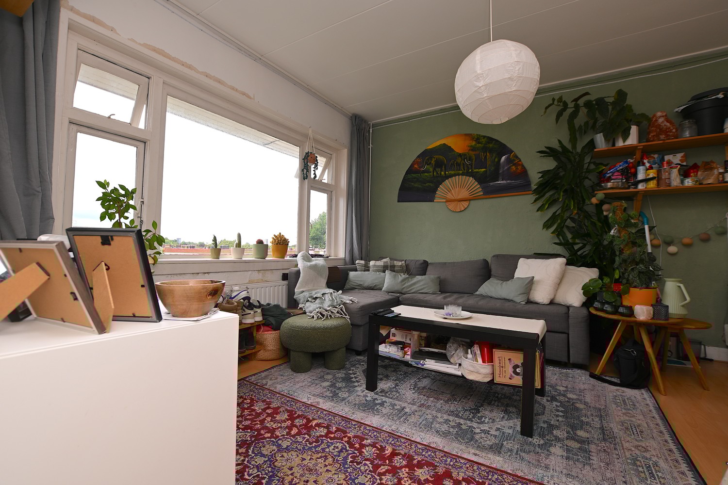 The room is located on the second floor at the back of the house. There is enough space for a spacious sitting and dining area. Thanks to the built-in cupboards, there is also enough space for all your stuff. There is also enough space to fit a bed.