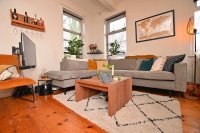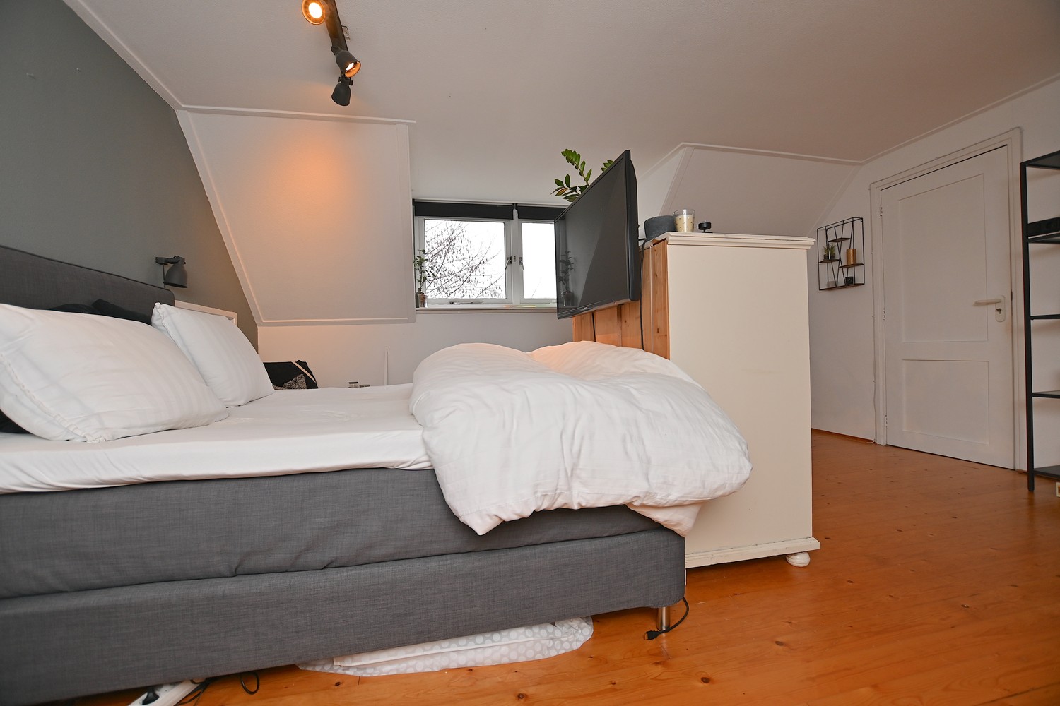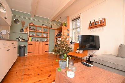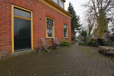 The living space is situated by the water. The city center is about a 5-minute bike ride, and the main train station is 3.4 km away by bike. A supermarket is a 1-minute walk, and the bus stop is located on the other side of the water.