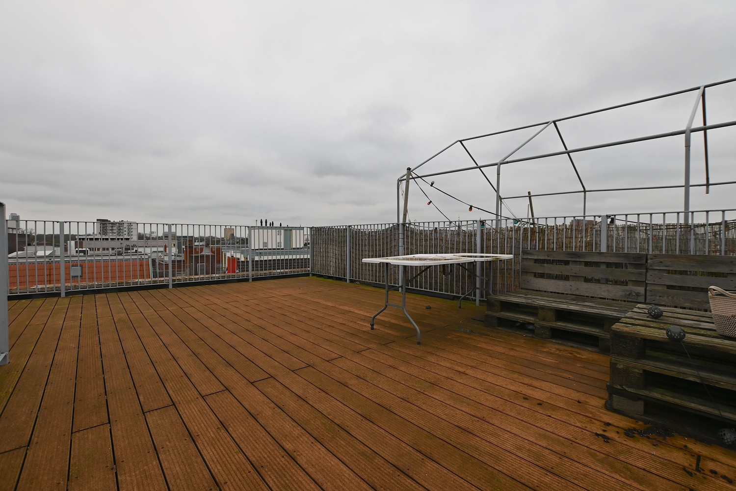 The apartment has two bedrooms measuring approximately 10m² and 6m². From the living room, you have access to a spacious roof terrace of approximately 50m², which offers beautiful views over the entire city.