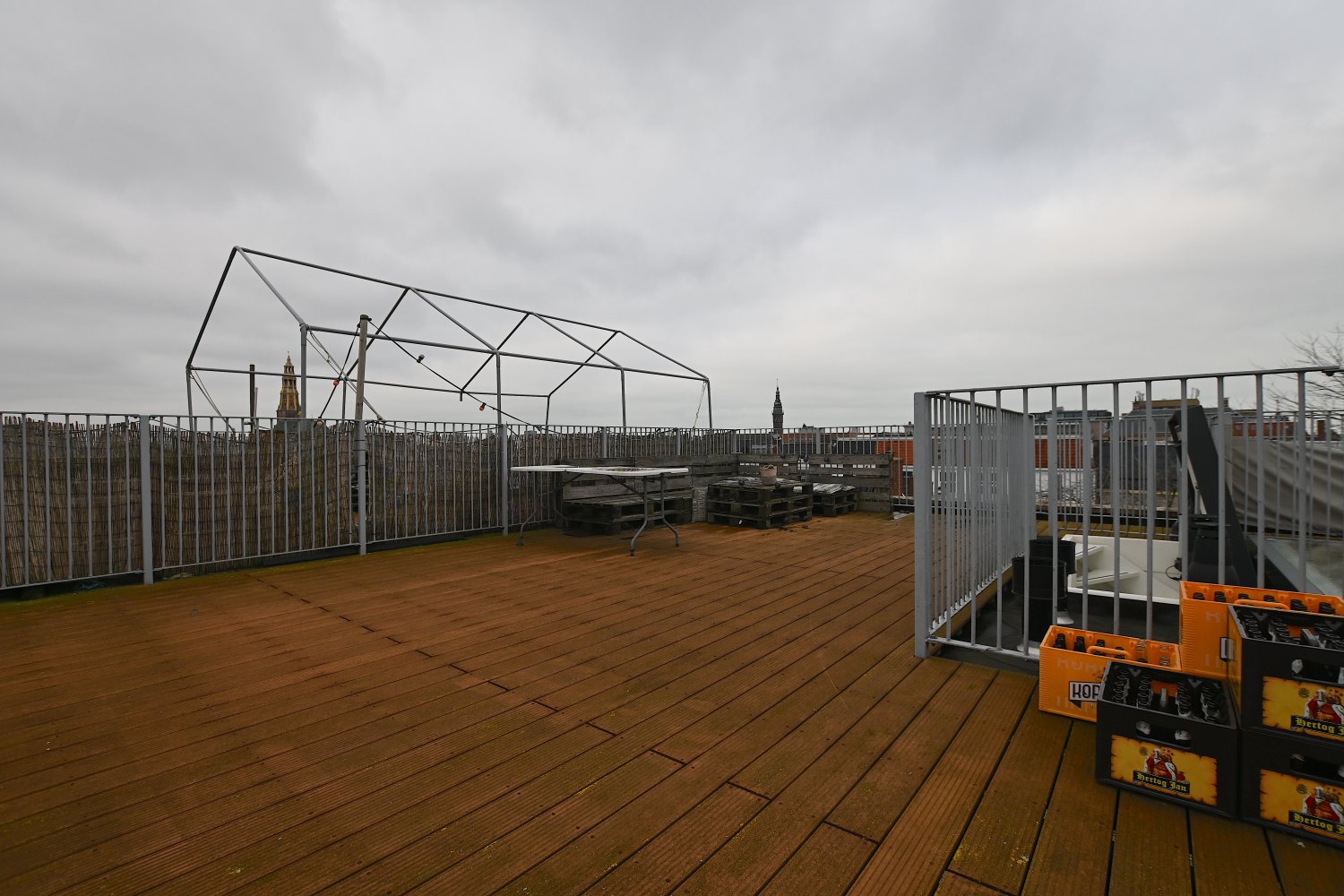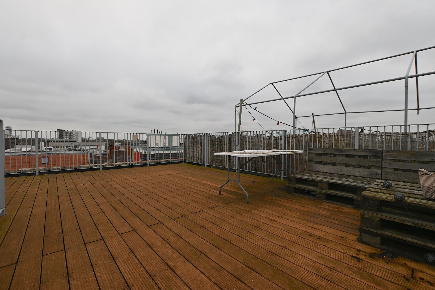 The appartment has two bedrooms of about 10m2 and 6m2. From the living room you have access to a spacious roof terrace of about 50m2, here you have beautiful views over the entire city.