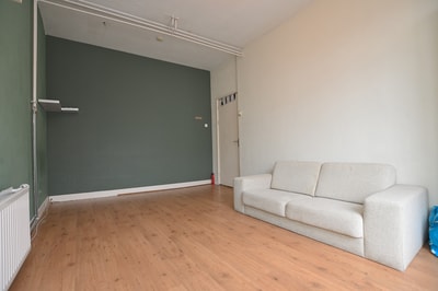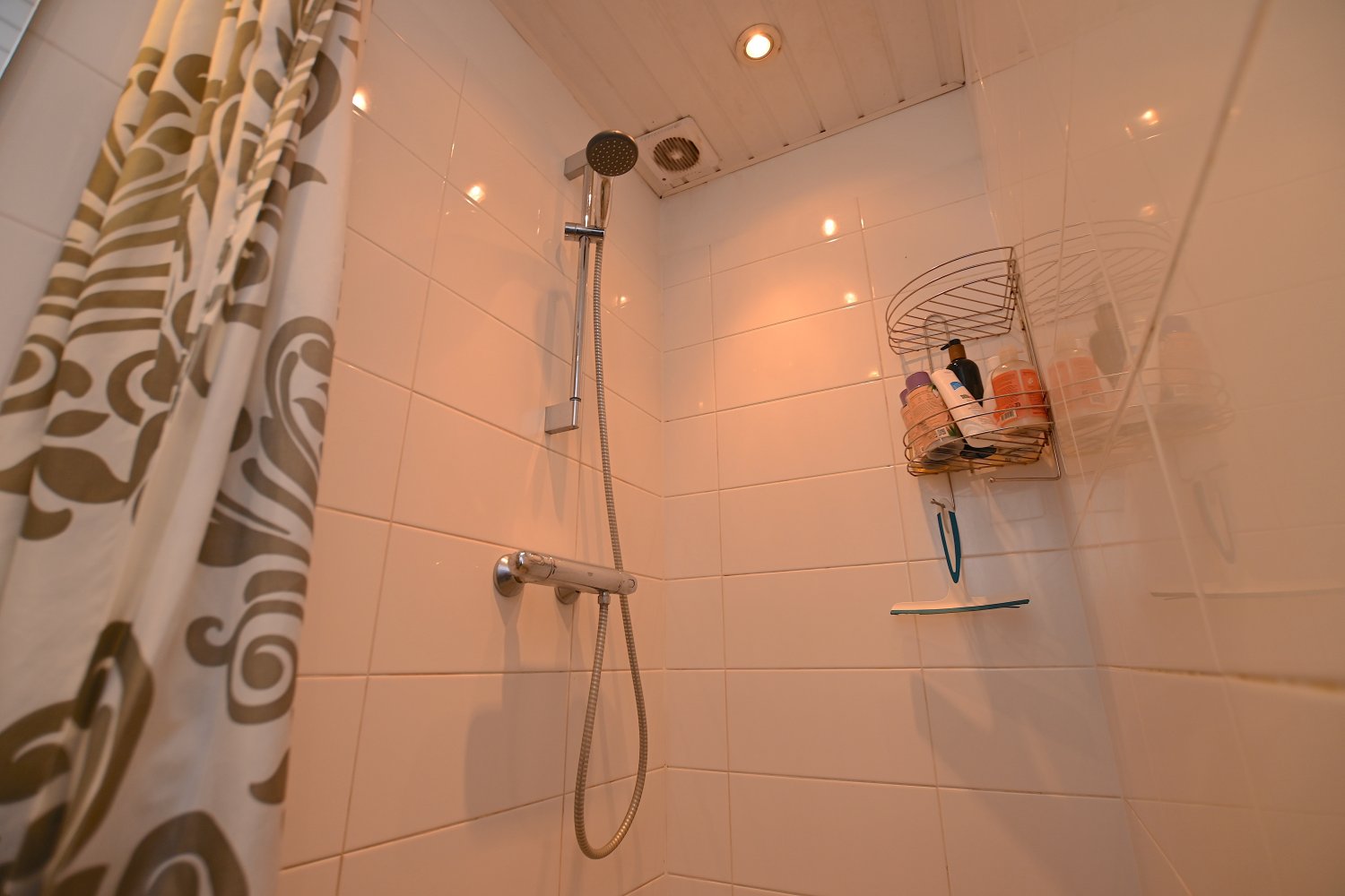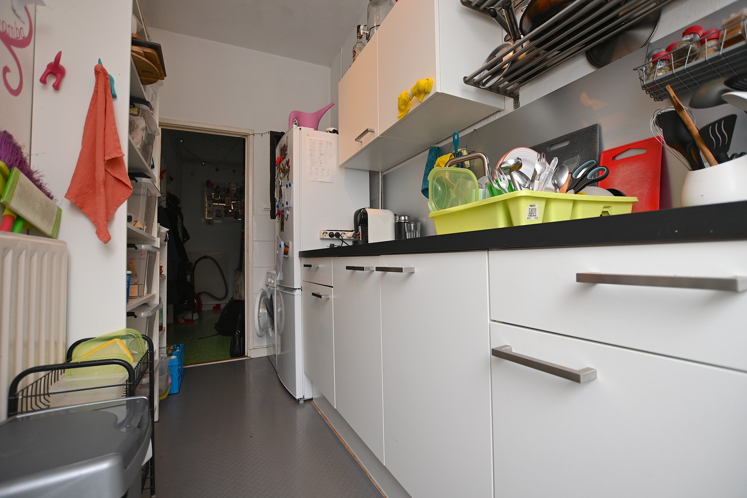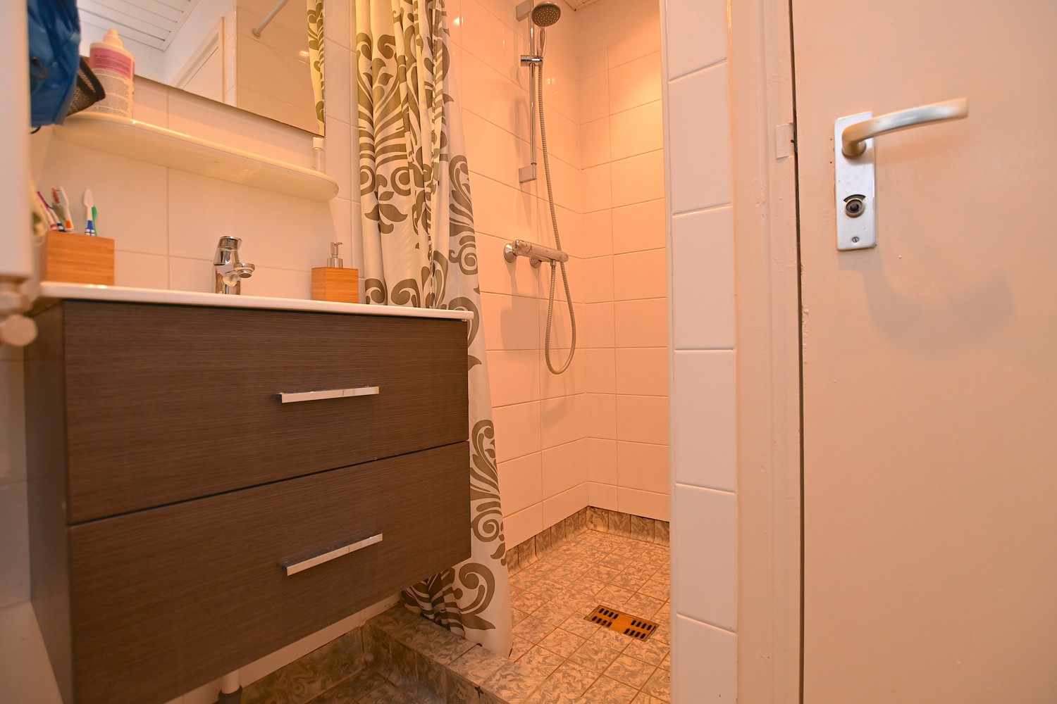 The room is at the rear of the property and is spacious enough for a double bed, as well as room for a desk and/or a sofa. On this floor, there is also a shared kitchen with a modern look and all conveniences. From the kitchen, you have access to the shared rooftop terrace where you can enjoy sitting during the summer. On the second floor, there is a bathroom with a shower and sink, and a separate toilet. All facilities are shared with three other tenants.