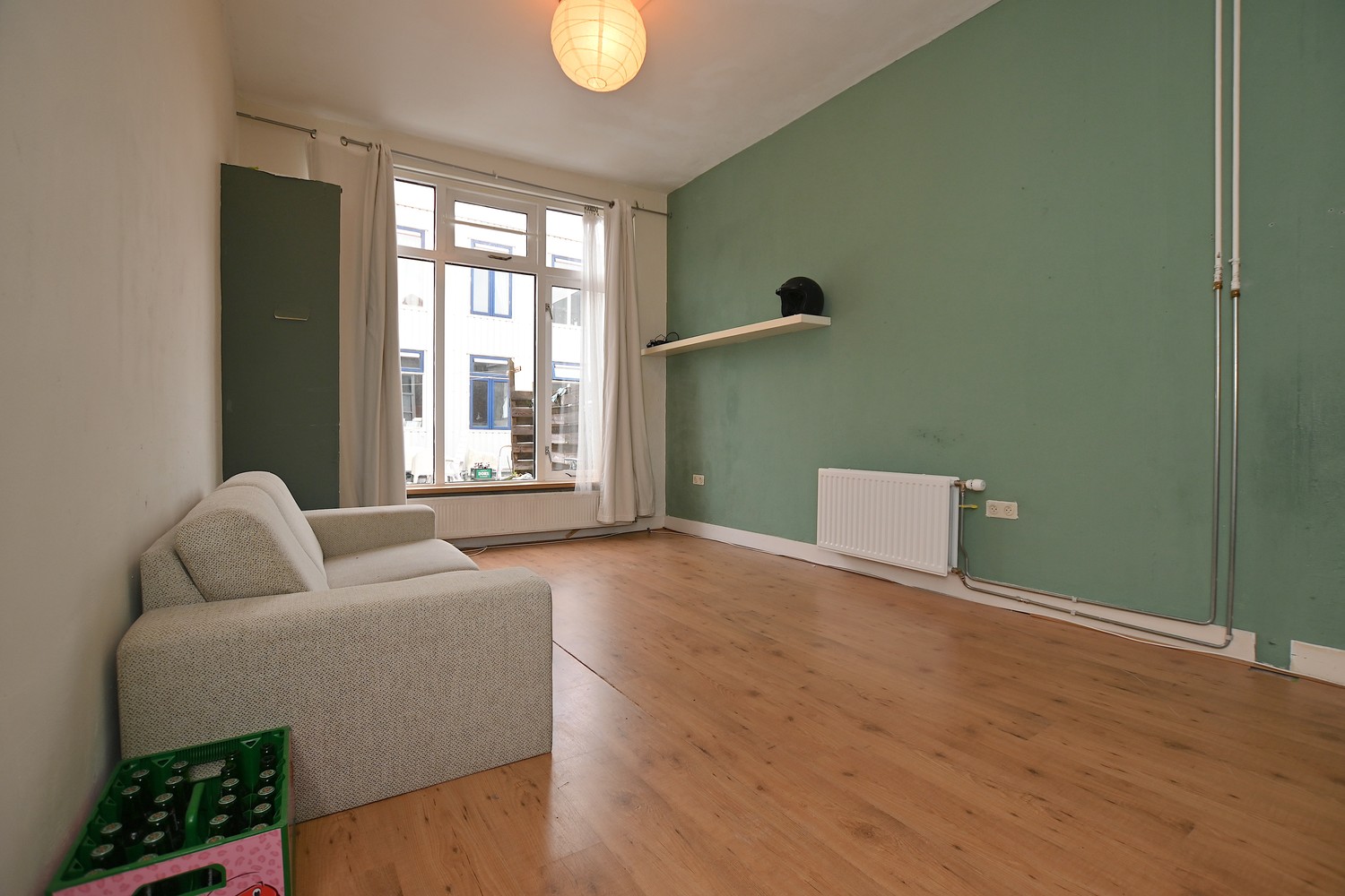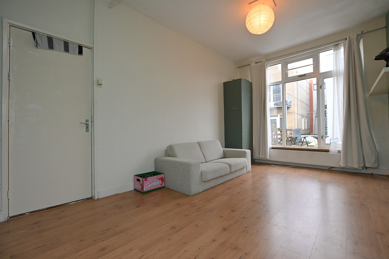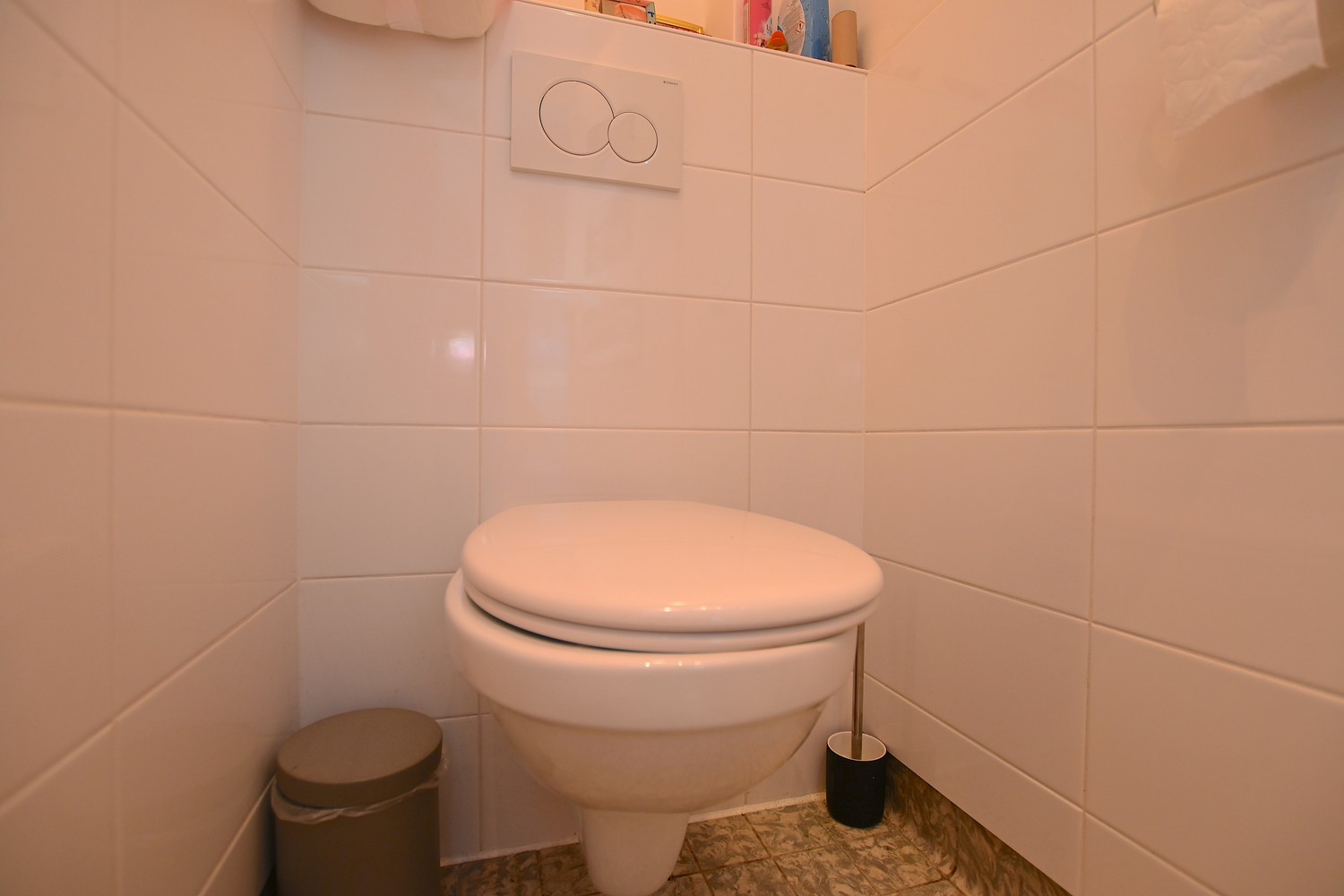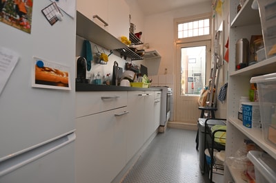 The room is at the rear of the property and is spacious enough for a double bed, as well as room for a desk and/or a sofa. On this floor, there is also a shared kitchen with a modern look and all conveniences. From the kitchen, you have access to the shared rooftop terrace where you can enjoy sitting during the summer. On the second floor, there is a bathroom with a shower and sink, and a separate toilet. All facilities are shared with three other tenants.
