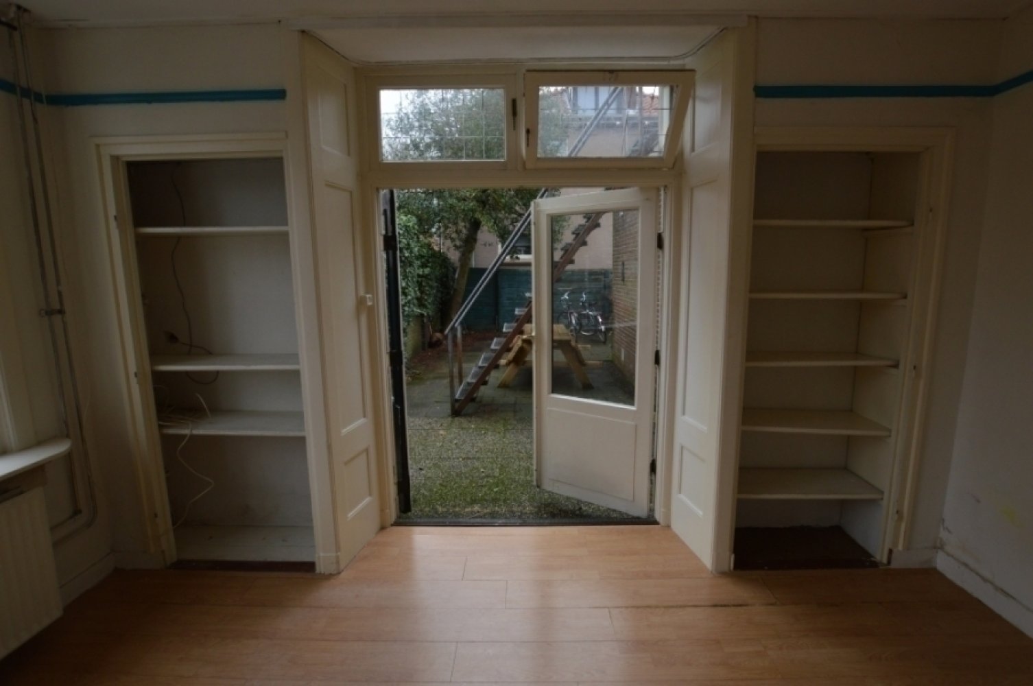 This building consists of a first floor and second floor. The room is situated on the first floor at the front of the building. The room has large windows so there is a lot of light. The kitchen, bathroom and toilet are shared with two inmates who also live on the first floor. The outdoor space is shared with the residents of both the second floor and the first floor.