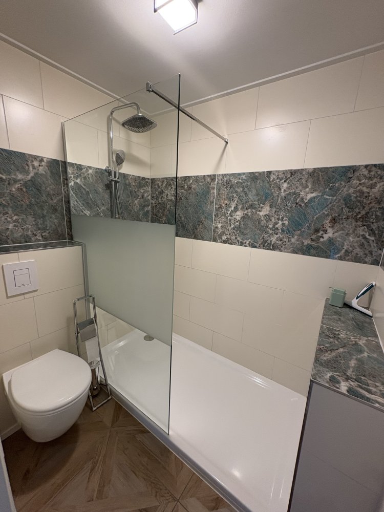 Two spacious bedrooms (approx. 16 m²) each with washbasin, additional toilet and a spacious bathroom with shower.