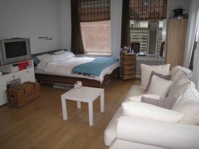 The studio can be found in the center of Meppel, in an upstairs apartment. From here the station of Meppel is at 5 minutes cycling distance, as is the city center. The studio in question is situated on the second floor of the building. The studio has its own kitchen with refrigerator. The showers, toilets and roof terrace are shared with the co-tenants.