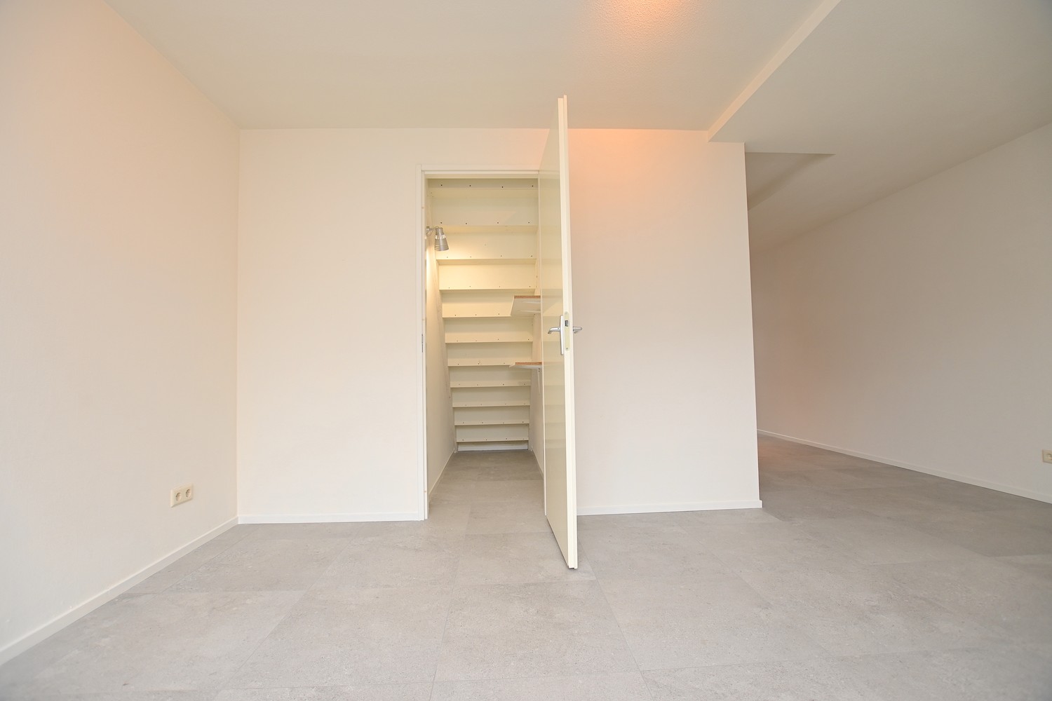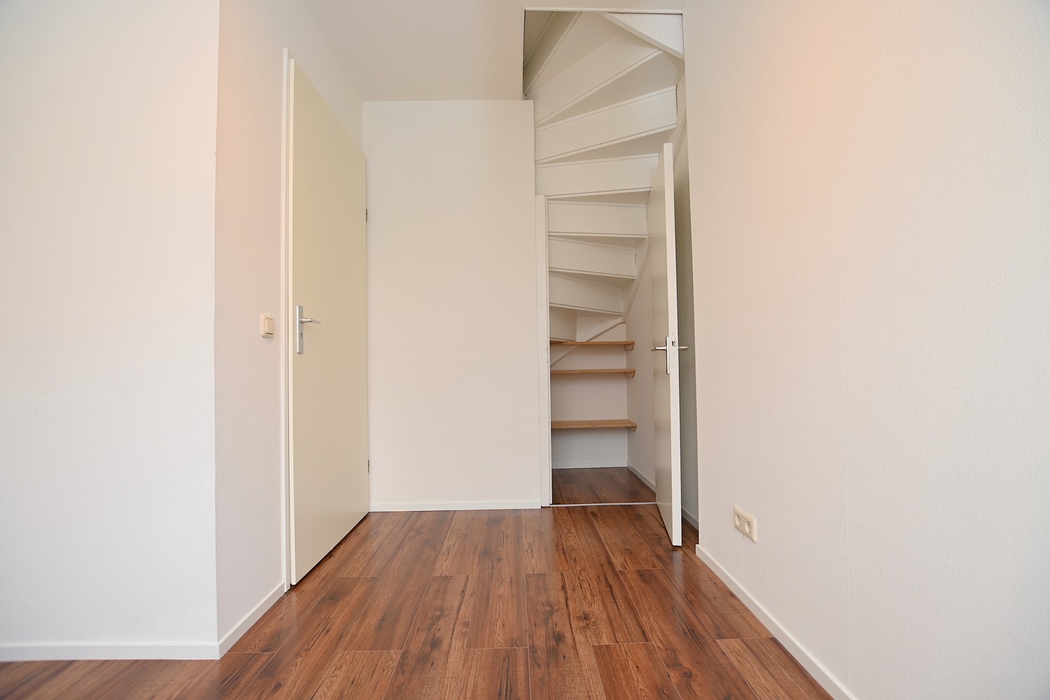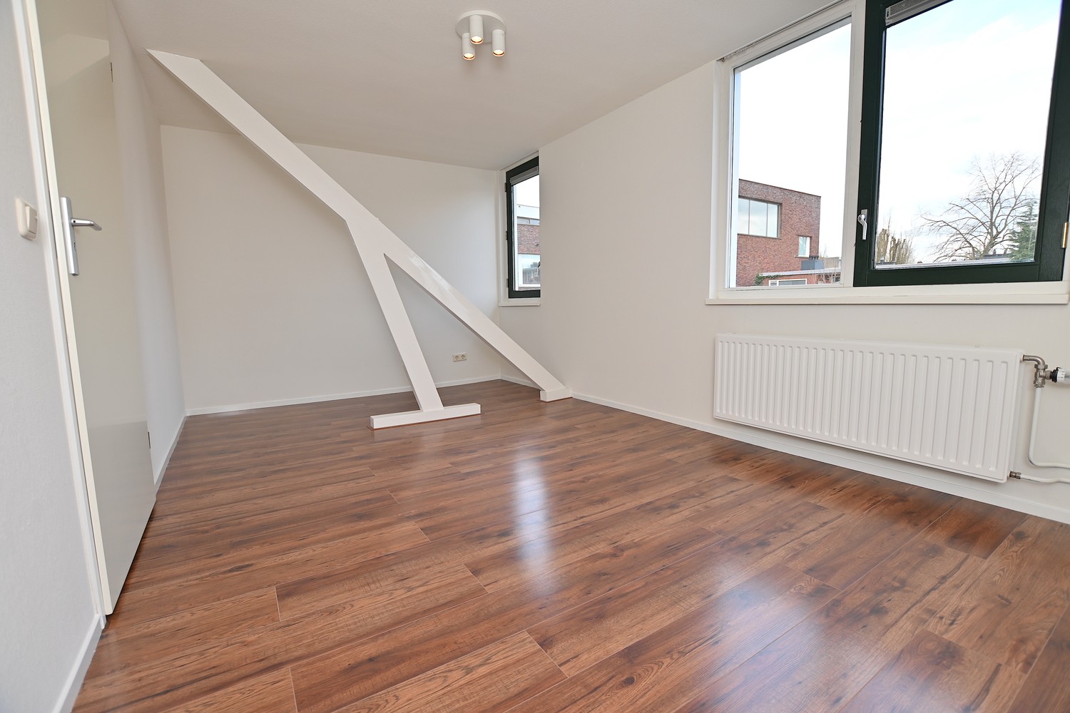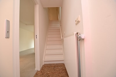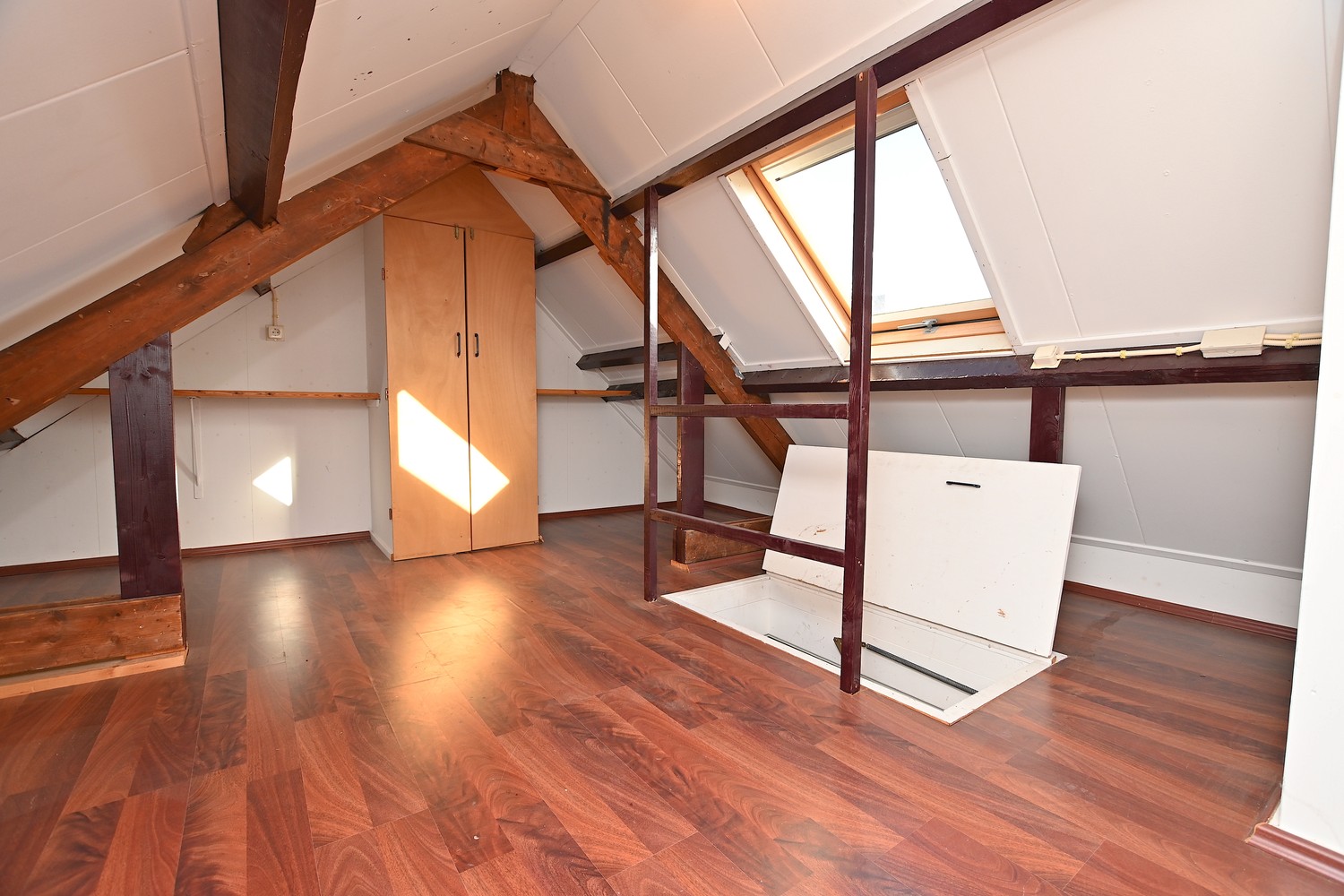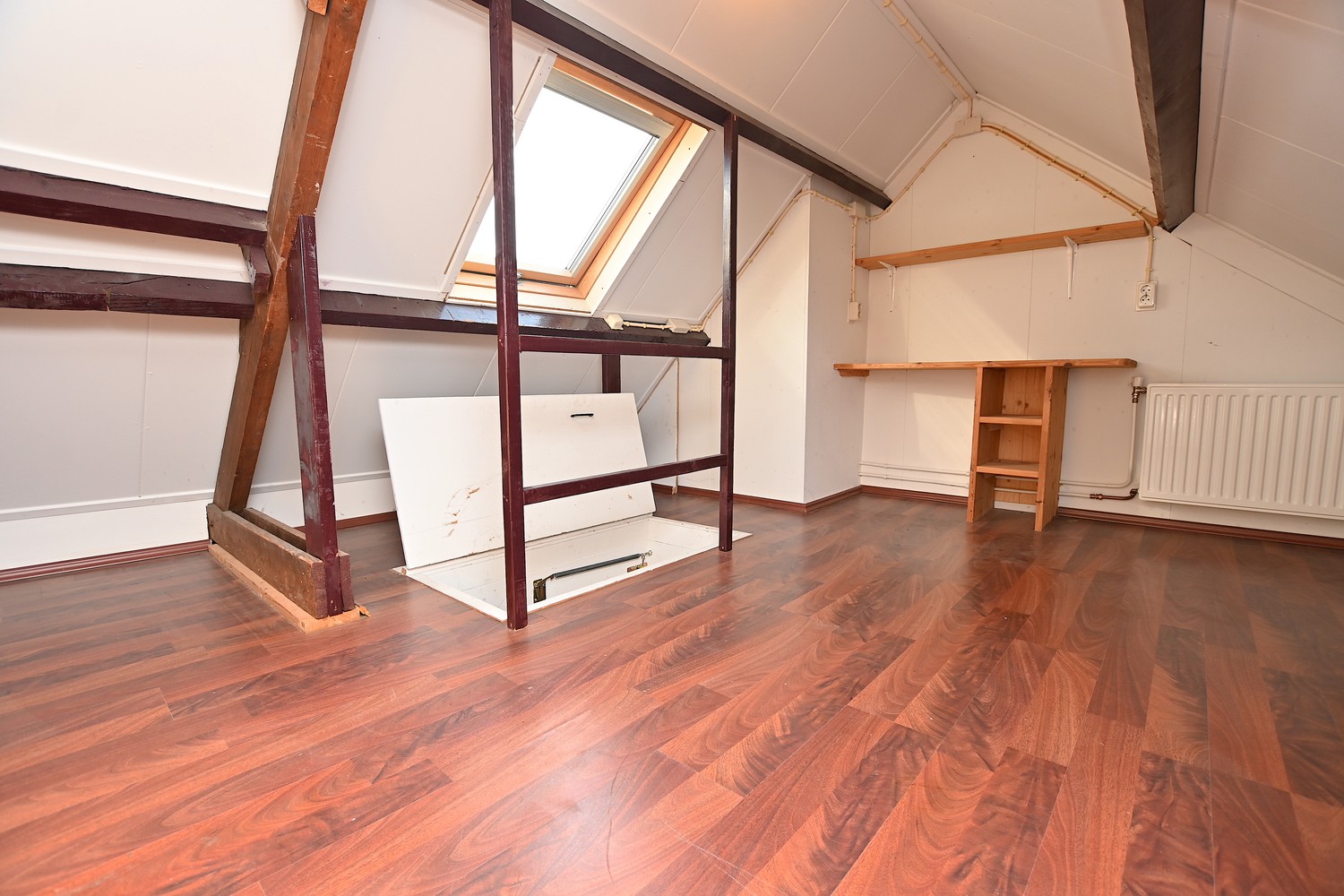On the second floor, there are 2 more spacious bedrooms. In the bedrooms, there is sufficient space for a wardrobe, a double bed, and possibly a desk. In other words, sufficient space. In the hallway on the second floor, there is also a hatch that leads to the attic of approximately 6m2. There is sufficient space in the attic for a possible home office, but this attic can also be used as extra storage space.