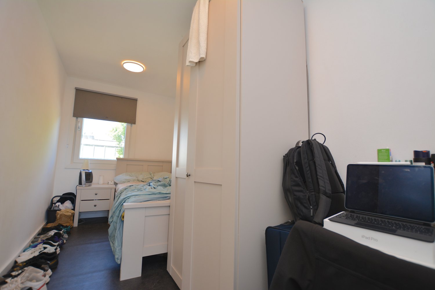 The room has sufficient space for your bed, desk, and a wardrobe. The house is shared with 6 housemates. You share the large living room of 43 m², the kitchen which is equipped with a dishwasher, oven, sink with tap, gas stove, and a lot of workspace to prepare your meals. There are two shared bathrooms available. The house also has a large roof terrace and a balcony directly opposite your room.