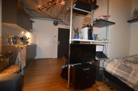 The studio was renovated a few years ago and is in excellent condition. It is delivered with a PVC floor and window coverings. The living space has a private kitchen with a built-in fridge/freezer combination and cooktop, and a bathroom with toilet. The studio is fully furnished.