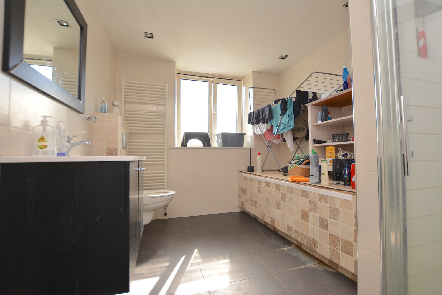 The room has enough space for a double bed, desk, and wardrobe. The house is shared with 6 other residents. You will share the large 43 m² living room, the kitchen, which has a dishwasher, oven, sink with tap, gas stove, and plenty of workspace to prepare your meals. There are two shared bathrooms. The house also has a large roof terrace and a balcony directly opposite your room.