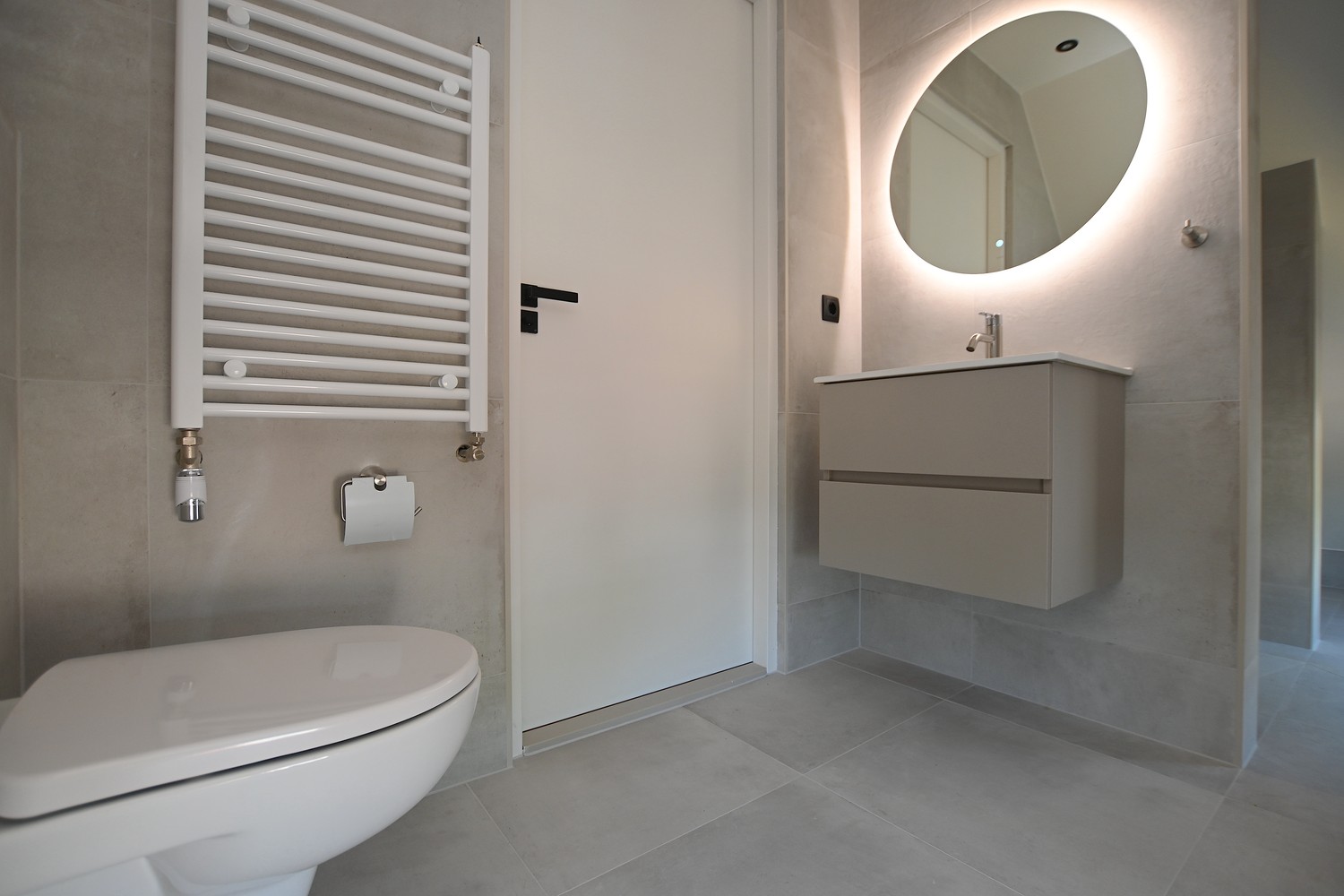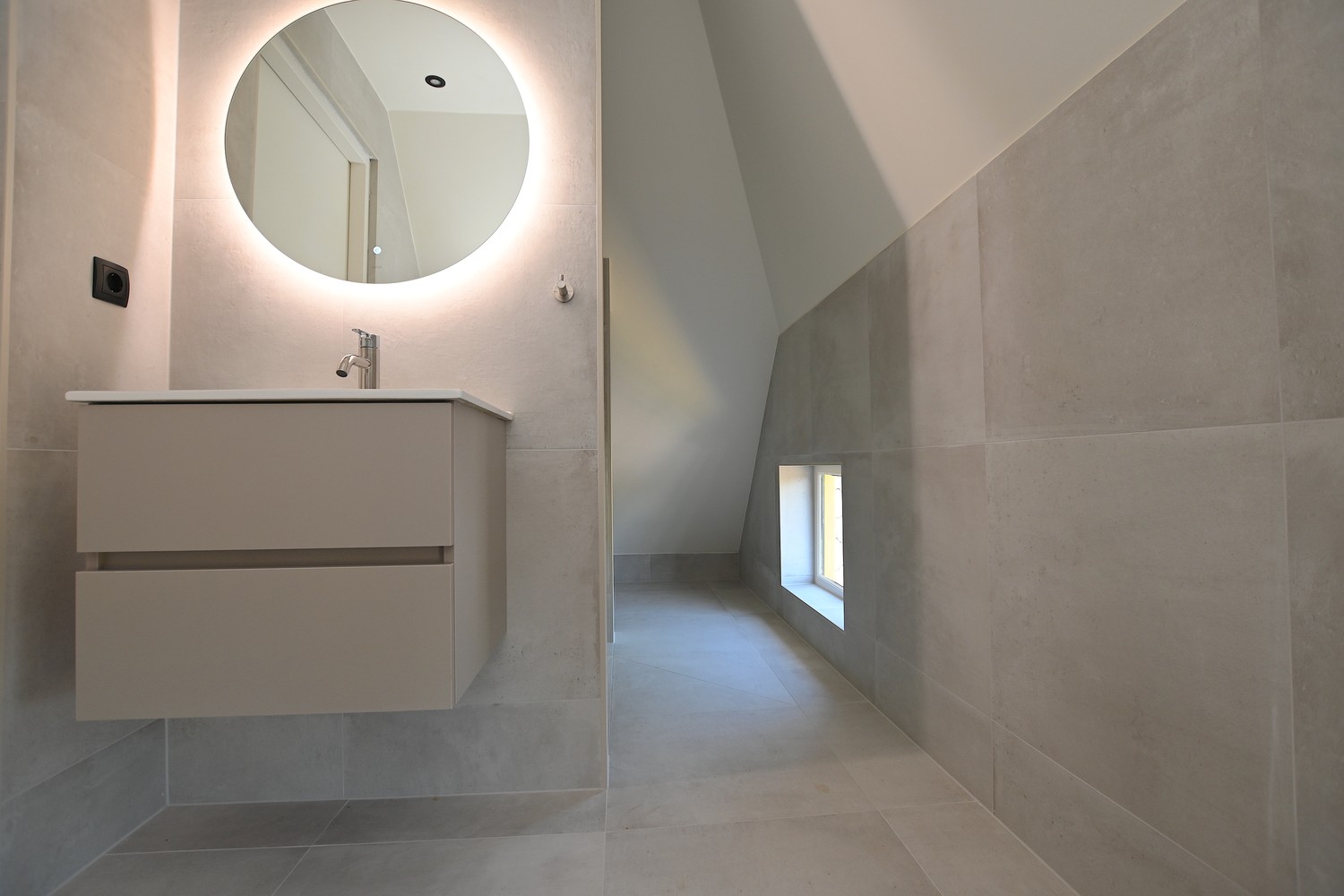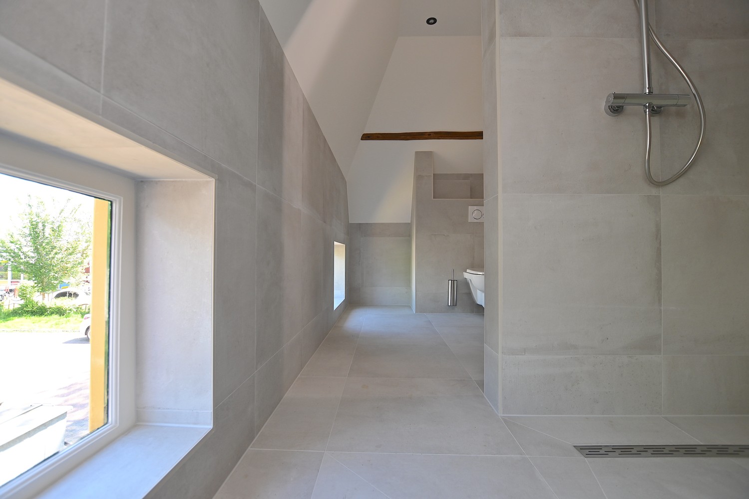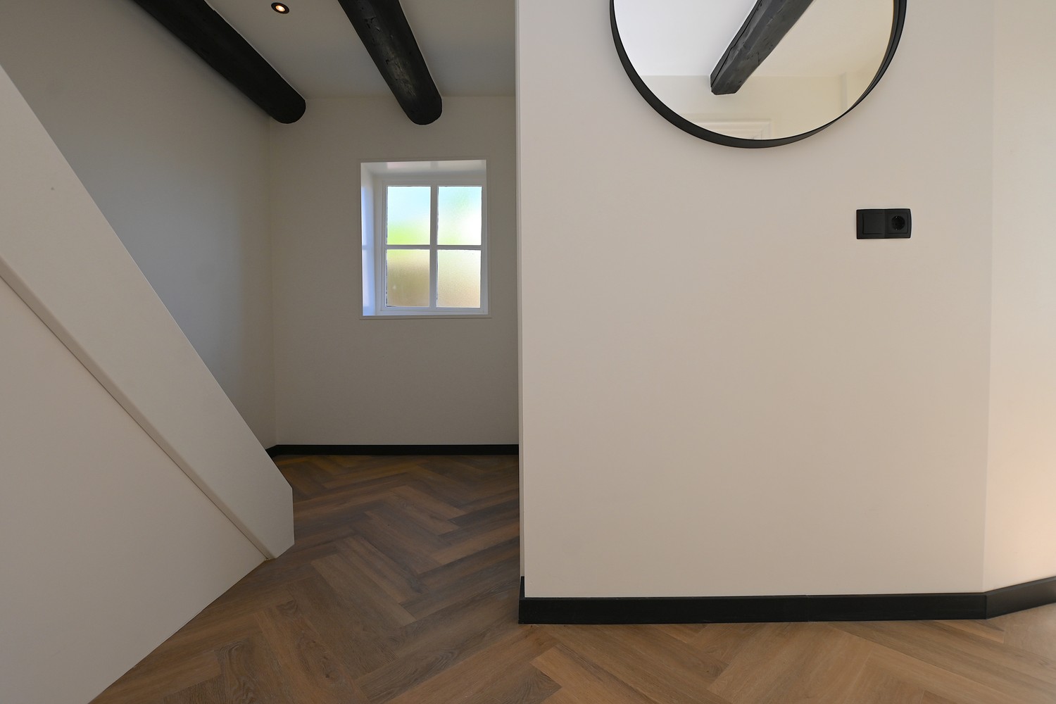 Through the front door you enter the spacious hallway which gives access to the bright living room. In the living room the old elements of the building have been preserved and combined with modern aspects. Adjacent to the living room is the sleek kitchen which is equipped with a refrigerator with freezer compartment, induction cooktop, extractor hood, combi oven and sink. The kitchen is also equipped with sufficient storage and workspace.